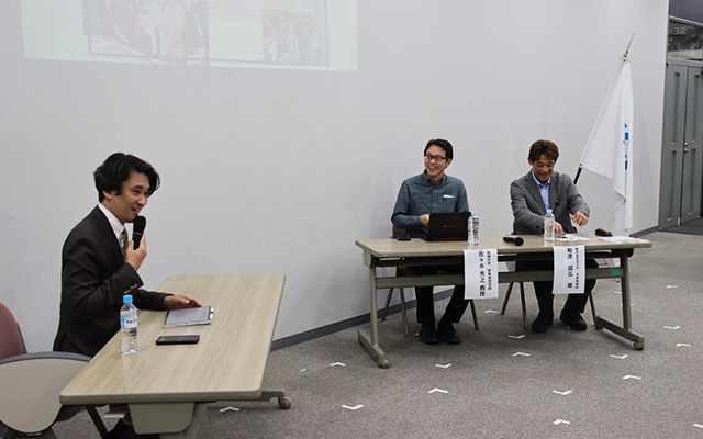 第1部では、宮城大学 事業構想学群 教授の佐々木秀之様、株式会社ガイア 代表取締役 相澤国弘様を講師としてお招きし、地域資源を活かしたビジネスモデルのトークディスカッションを行い、これまでの経験やまちの変遷について、我々が行っていくまちづくりや事業の考え方のヒントを教えていただきました。